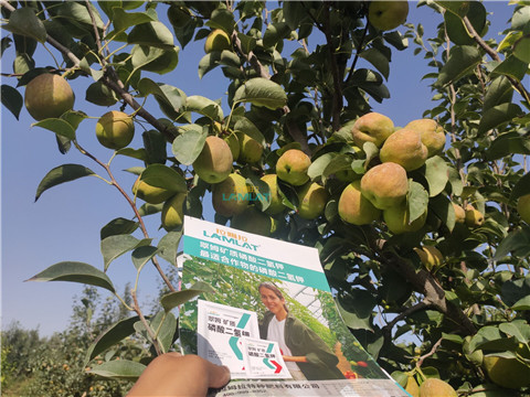 去年香梨采收時,摘果子的工人問李大哥為什么同一塊地兩種長勢?李大哥笑著說,因為我使用兩種不同的水溶肥品牌進行了對比,從整體來看,用過拉姆拉翠姆顆粒水溶肥的香梨效果更明顯些,果實個頭更大,上色效果好,而用原來水溶肥品牌的香梨效果則差些,個頭明顯小一圈,整體長勢明顯不如拉姆拉翠姆水溶肥的效果好。