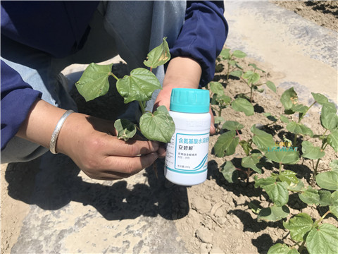 筆者走訪新疆市場發(fā)現(xiàn)大家討論說,在當?shù)厮麄儗τ诔輨埩粲忻钫?,?jīng)交談發(fā)現(xiàn),大家普遍使用一個叫做安碧解的產(chǎn)品,說效果特別好。后來與一位種植戶聊完才發(fā)現(xiàn),安碧解是拉姆拉水溶肥公司的拳頭產(chǎn)品,專門針對除草劑藥害研發(fā),目前在棉花應(yīng)用效果非常好,與封閉除草劑一起復配使用,除草迅速又環(huán)保。