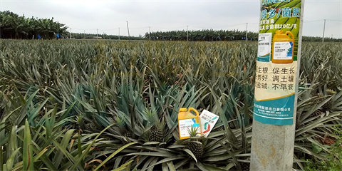 由于鳳梨根系淺,在鳳梨定植時,王大哥使用翠姆根碧多+翠姆微生物菌劑,滴灌2畝地,促進(jìn)根系發(fā)達(dá),使根扎得更深,提高苗的成活率,減少鳳梨苗的干尖黃葉,為后期提升產(chǎn)量品質(zhì)打基礎(chǔ)。
