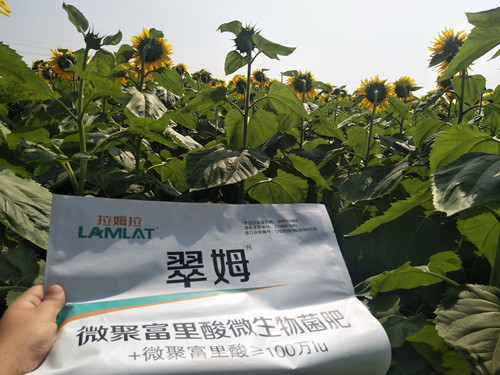 2.抑制其他有害菌(講個(gè)真實(shí)案例:在蒙古都知道葵花一旦重茬就會(huì)起列當(dāng),列當(dāng)這個(gè)病就相當(dāng)于人類的癌癥,一旦出現(xiàn)無(wú)藥可救。后來(lái)一個(gè)偶然的機(jī)會(huì),一個(gè)重茬帶有列當(dāng)?shù)目ɑ乜蛻?00畝使用拉姆拉菌肥,就在用一個(gè)星期后,客戶反應(yīng),列當(dāng)雖然沒(méi)死,但是葵花卻絲毫沒(méi)受列當(dāng)影響,長(zhǎng)勢(shì)非常好。)那么拉姆拉菌肥為何會(huì)有那么好的效果呢?這個(gè)做了調(diào)查,因?yàn)槔防仕木菏橇缶骸?0億的活性菌,不但可以改善土壤破除板結(jié)還可以抑制有害物質(zhì),防死苗爛顆生根壯根等作用,不但菌的數(shù)量多里面還有氮磷鉀+有機(jī)質(zhì)。菌肥里面添加氮磷鉀如果沒(méi)有最好的工藝是不可能完成的。
