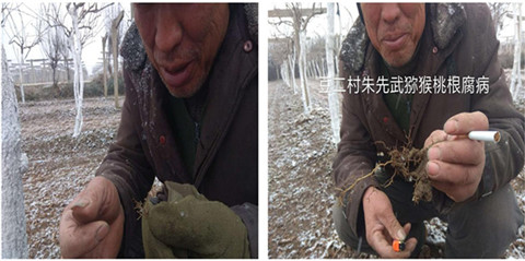 下圖是2019年11月28號雙明村,翠香獼猴桃果樹出現(xiàn)根腐病,使用拉姆拉伯示麥生根劑灌根的現(xiàn)場圖片,過去因缺少管理經(jīng)驗,大化肥施入過多,引起果樹根腐,現(xiàn)在經(jīng)過當?shù)丶夹g(shù)老師的指導(dǎo),使用伯示麥生根劑套餐灌根,促進根系新生,伯示麥生根劑耐高溫和低溫,在零下10攝氏度一樣能使用,特別添加核心成份聚谷氨酸,保水保肥性好,添加生根因子,生根刺激素,北大西洋馬尾草中提取,生物型,安全性好,不燒根,效果顯著。